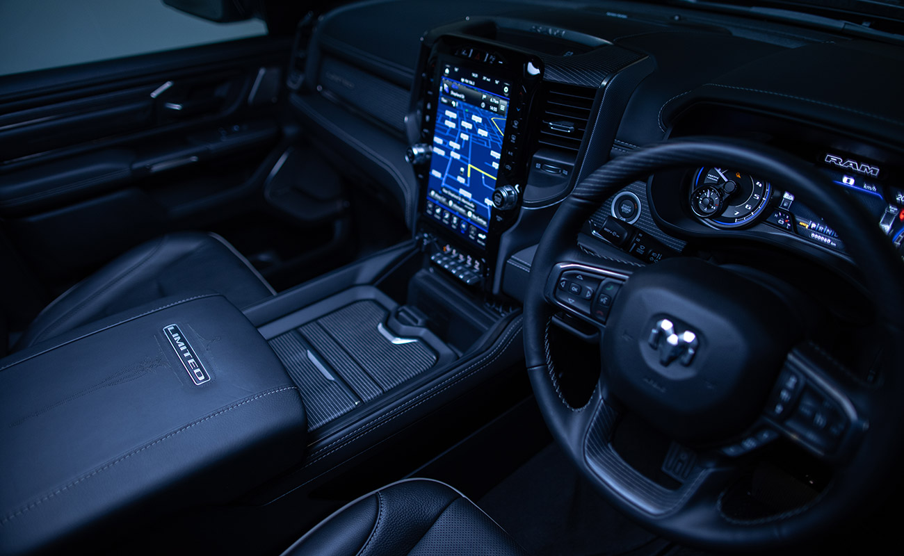 The all-new Ram 1500 Limited is loaded with an array of innovative and state-of-the-art technology combined with the Uconnect® system to offer infotainment, navigation, and vehicles settings, all at your fingertips. High-tech features include a class-exclusive and easy-to-use 12-inch fully configurable touchscreen display and the most powerful audio system ever available in a pickup – 900-watt Harman Kardon® with 19 speakers*. An active noise cancellation system and acoustic glass reduce ambient sounds to extremely low levels, making the Limited the quietest Ram 1500 ever. So quiet in fact, you’ll feel like you’re in a large luxury SUV.