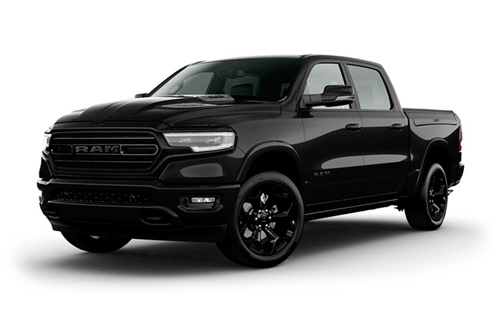 With Class-leading capability, state-of-the-art technology, and sleek new lines the Ram 1500 Limited is our most advanced and sophisticated workhorse so far. Undergoing a complete re-design on the inside and out, the all-new Ram 1500 Limited is our most sophisticated and technologically advanced full-size pickup. Longer and wider, the body design retains shapely lines with a more aggressive and bold front grille. The longer wheelbase and cab give the truck improved proportions for even more interior comfort and enhanced aerodynamics. The exterior design is finished with a host of stealth black accents including a sports hood, badging, 22” rims and striking diamond black crystal pearl-coat paint.