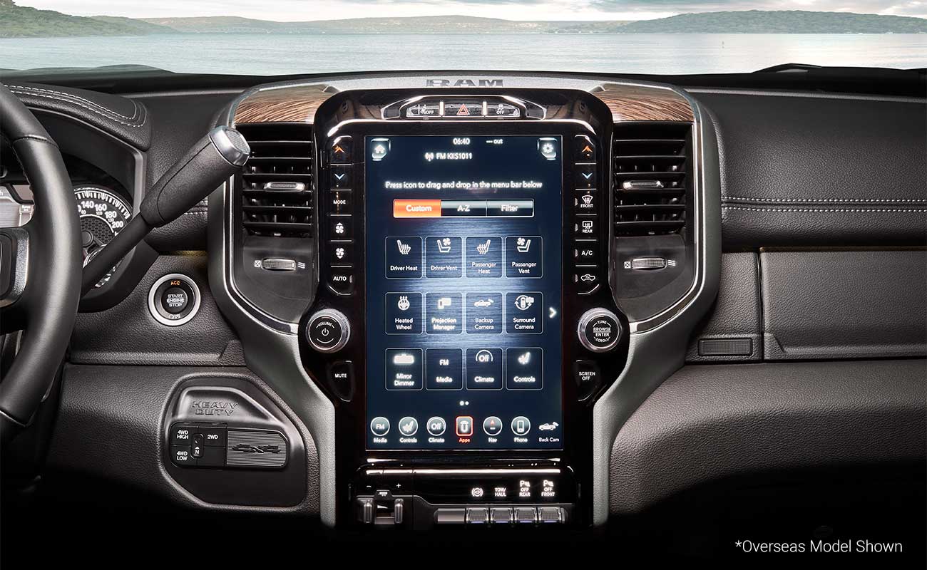 Designed to be the most technologically advanced heavy duty pickup ever, the new Ram 2500/3500 Laramie® is loaded with an array of innovative and state-of-the-art features. The award-winning fourth-generation Uconnect® system offers new convenience and connected services to keep Ram truck customers connected, engaged and informed whilst keeping their hands on the wheel and eyes on the road. The Uconnect® 4C NAV system features a 12-inch reconfigurable touchscreen and state-of-the-art connectivity. Personalization is made easy with the new split screen, allowing two different applications for desired configuration, such as Apple CarPlay® and climate controls, or one application, such as navigation across the entire 12-inch touchscreen. Another new tech feature of the heavy duty range is the digital rear-view mirror which increases the visibility of the surroundings behind the vehicle, as well as a clearer, brighter view in dark or poor light weather conditions. An active noise cancellation system with anti-vibration devices and acoustic glass significantly reduces ambient cabin sound levels to produce the quietest heavy duty Ram ever.